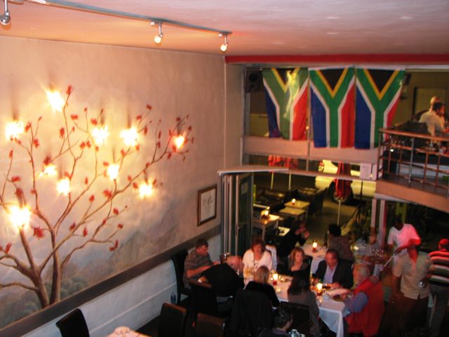 - We had two nice dinners out with Evan, both on 7th Street. One was at the Lucky Bean, which is undoubtedly the best restaurant in Melville. Their specialty is springbok pie, which Evan ordered and enjoyed. I had an ostrich burger with something called bobotie stuffing. Bobotie is made of ground meat covered with a thin layer of egg. Sounds gross, I know, but it’s not. Joe had salmon. As always when we eat at the Lucky Bean, none of us were disappointed.