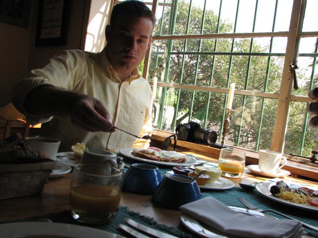 Breakfast is open to the public so we met Evan there one morning. We ate hearty Afrikaans food and absorbed the homey, academic vibe. Joe even approved of the coffee, which is a great rarity.