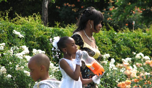 We wandered through a boisterous wedding party, got wet in a sudden thundershower, and drove home.