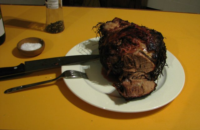 We grilled an entire leg of lamb – bought from a local butchery and marinated with olive oil and herbs from the garden – and a tray filled with potatoes, onions, and baby gem squash.