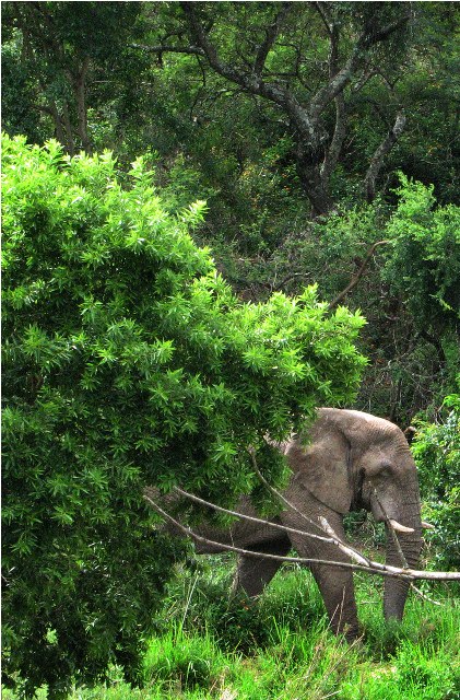 The paved road became a dirt road and we were suddenly in the middle of the bush. I looked up from studying the map. And saw an elephant.