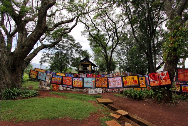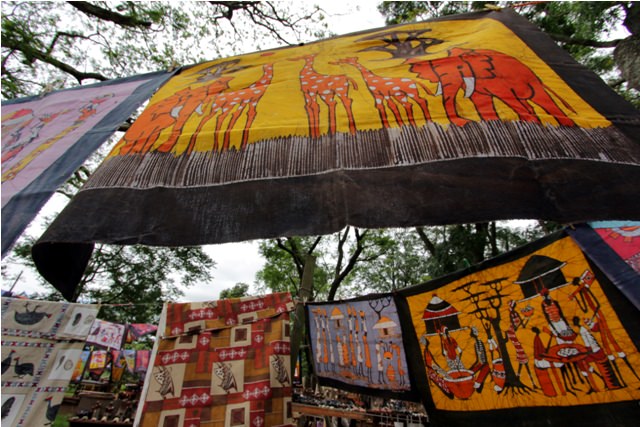 On our way out of Swaziland we stopped at a souvenir place called Swazi Candles – one of our favorite hangouts in Swaziland. Swazi Candles is a quirky, artsy tourist trap. It consists of a complex of buildings, one of which is the candle workshop/studio. Then there are several other shops, a small café, and an outdoor area filled with artisans selling a local crafts.