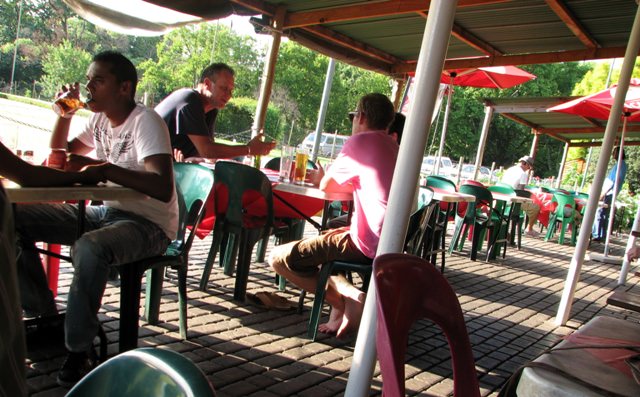 Moyo has a beautiful rooftop deck, which I’m sure would have been a lovely place for a (pricey) post-run/walk sundowner. But instead Joe took me to a true hidden gem – the Zoo Lake Bowling Club.