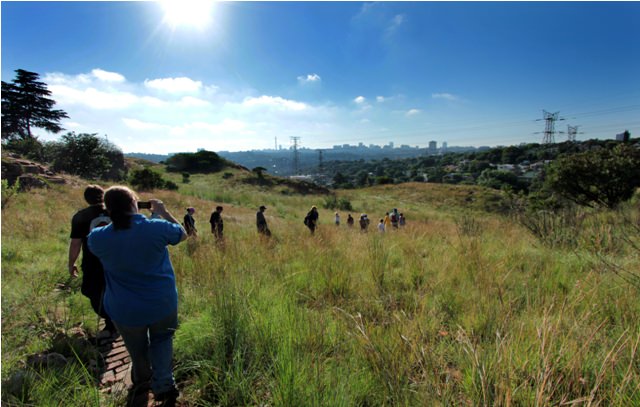 The Melville Koppies are nothing like Central Park, Hyde Park, or any other city park. They feel primordial and alien. Walking there is like traveling back in time – before Joburg traffic, before the gold mines, even before humanity. In addition to hundreds of indigenous plants and animals, there are rocks more than three billion years old and Iron- and Stone-Age ruins. But looming in your peripheral vision are reminders of the modern world – heavy power lines, houses, and the Joburg skyline.