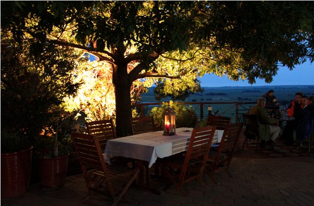 We arrived at Lionsrock a couple of hours before Martin and Bagira, so we had time to take in the scenery at the lodge. Lionsrock is in South Africa’s rural Free State Province, perched below a large rock outcropping and overlooking a grassy plain. We relaxed on the terrace and watched a herd of ostriches frolicking in the distance. I strolled around and looked at the accommodations.