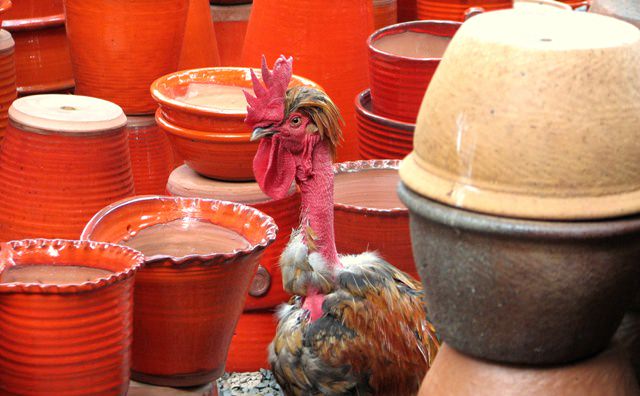 Yep! sure not something you would see walking around a pottery place in the suburbs of DC huh? (I used to live in Arlington when I was a kid) That is one ugly rooster! My wife would go nuts in that place…..our house would quickly be overflowing with pottery. :)