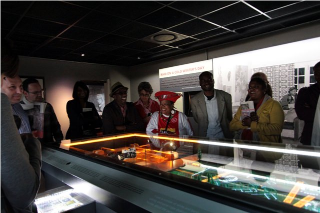 The first stop on the tour was Constitution Hill in Braamfontein – home of South Africa’s Constitutional Court and the historic Old Fort Prison. We received a brief tour of the prison and the Constitutional Court, which was built during Mayor Masondo’s tenure.