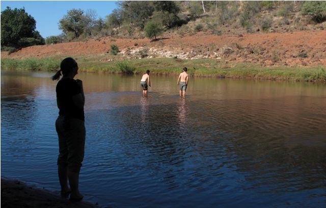 Most of the rocks in Pafuri are made of sandstone, which dates from a time when dinosaurs roamed South Africa. The sandstone indicates that the Pafuri region was very dry during the time the sandstone was created, between 210 million and 144 million years ago. (I hope I’m not getting this completely wrong. If I am, someone please correct me.)