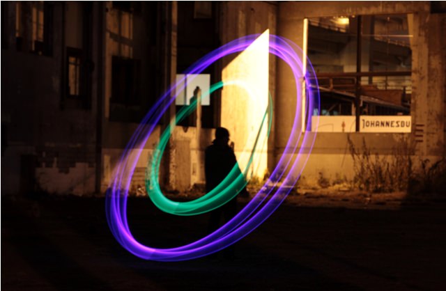 Most of the photowalks I’ve done have explored Joburg neighborhoods, like Hillbrow or Chinatown. But last weekend, instead of photographing a neighborhood, we photographed light. Artificial light that we literally painted onto a canvas of darkness.