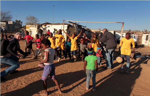We reached Squatter Camp Park – a barren dust bowl surrounded by shacks – where we found a lonely DJ spinning tunes and a ragtag band of children playing soccer. It wasn’t the entertainment we expected, but turned out to be more fun than we could have imagined.