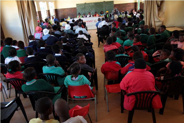 This event was called a “hand-over ceremony”, but nothing was actually handed over at the ceremony itself. (The donations were already neatly organized in the CBO office down the passageway.) The ceremony was more of a celebration – an opportunity for the community to come together and thank EGPAF for its support. There were speeches – lots and lots of speeches – delivered in the local language of Tswana. (If you’ve ever been to any kind of ceremony in Africa, then you know what I mean about the speeches.)