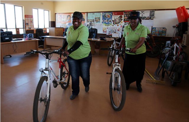 After the singing and speaking ended, Joe and I went to the CBO office to check out the most exciting EGPAF donation to Badirammogo: a fleet of bicycles.