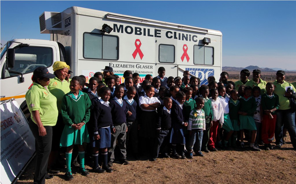 At the end of the day, all the school kids and community workers gathered in front of a mobile health clinic, also donated by EGPAF, for a group photo.