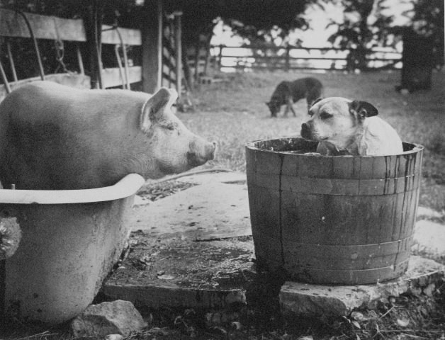 Love your father’s photographs - especially the recent portrait of Cooncie, the one of Cooncie walking her dogs in the snow, and the barnyard bath-time one.