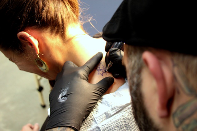 It’s our turn. Claire and I walk together into the tattoo studio. Oddly, we don’t feel nervous at all.