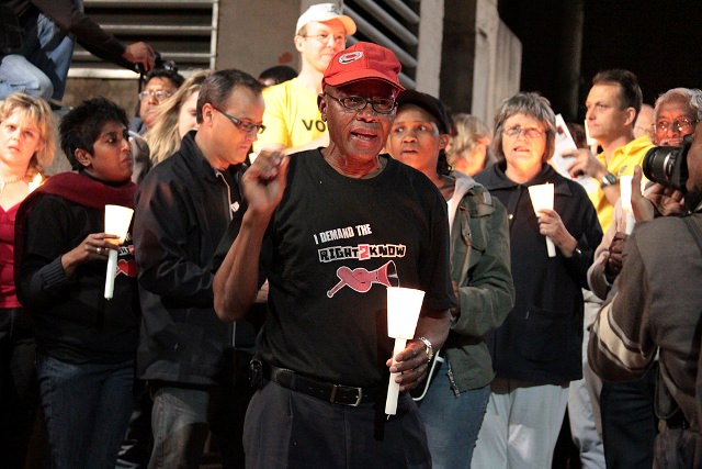 Joe was covering the vigil and I initially tagged along as a spectator. But I was quickly drawn into the spirit of the evening. Anyone who wanted to speak was invited to come forward. People spoke about how this protest reminded them of the anti-apartheid protests they’d attended 20 or 30 years ago, or about their fears of how this legislation could affect their daily lives and signify a return to the past. It wasn’t a large crowd – maybe 100 or 150 people – but it was passionate and diverse. There were people of all ages, all races, of every class, and of multiple professions and political persuasions.
