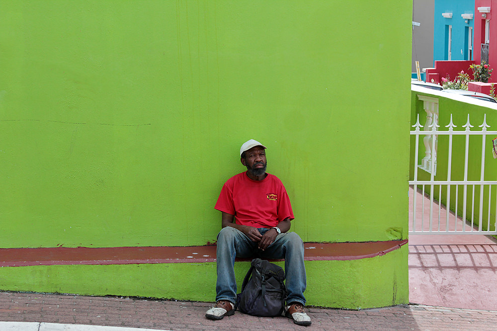Thanks Kathy. When I took that photo, I was actually intending to make it just the green wall with the guy in front of it. But then I accidentally included that glimpse of the street around the corner and realized it’s so much more interesting that way!