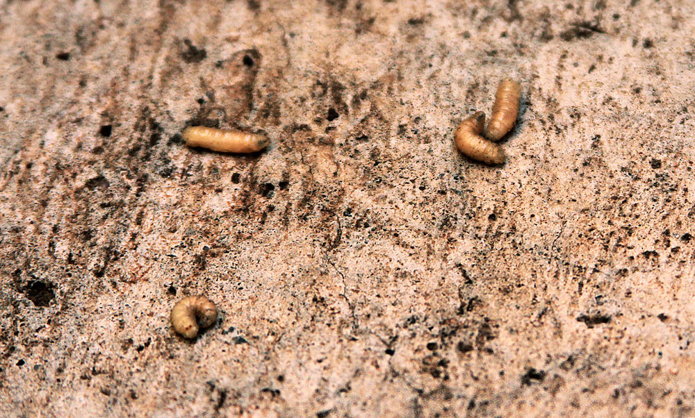 The worst was over. I watched the swept-up maggots (still alive, of course, as no broom can kill a maggot) wriggling on the pavement outside. I looked into the kitchen and spied a few strays. I began to think that maggots make interesting photography subjects. I fetched my camera.