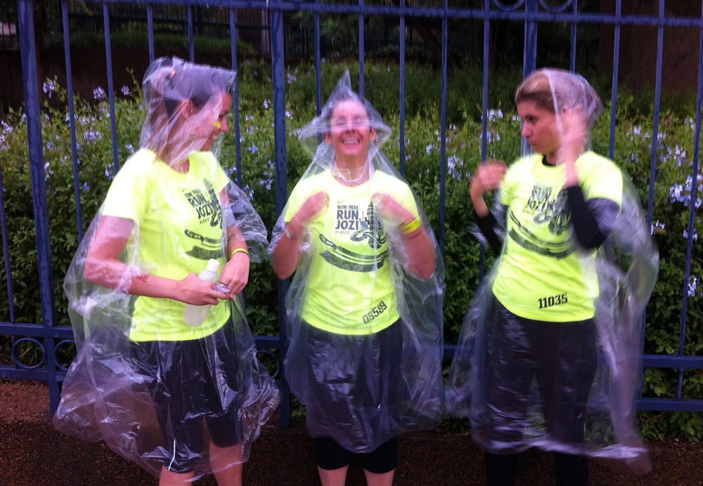 Thank goodness we got free ponchos (Nike, well done again). The rain was really coming down at this point. The plastic kept us warm, too.