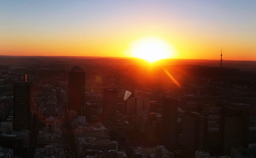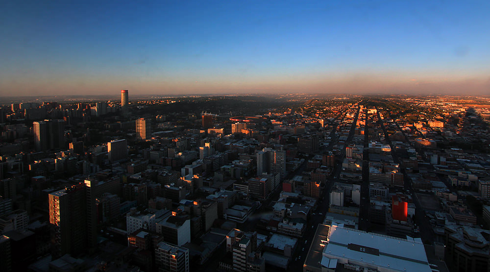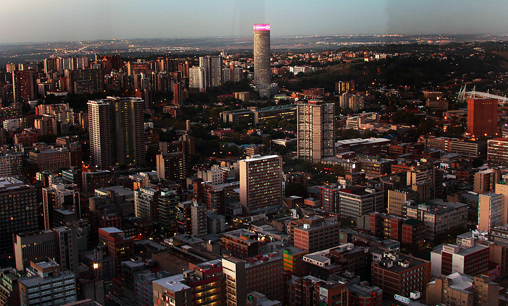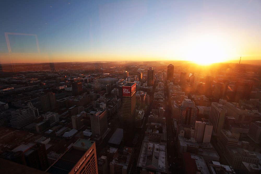 View to the northeast, anchored by Ponte City in Hillbrow. I don’t like those ugly dark reflections, but they’re just part of the deal at the Top of Africa.