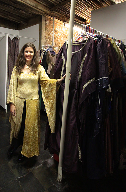 Upon arrival at Greensleeves, our first task was to don medieval garb. I was nervous, fearing that I’d struggle to find the right size and the outfits would be fussy and uncomfortable. These fears were unfounded. The costume staff operated like a well-oiled machine, directing us to the racks with our sizes and making suggestions. They also called me “milady”, which I appreciated. I found the perfect frock in less than ten minutes.