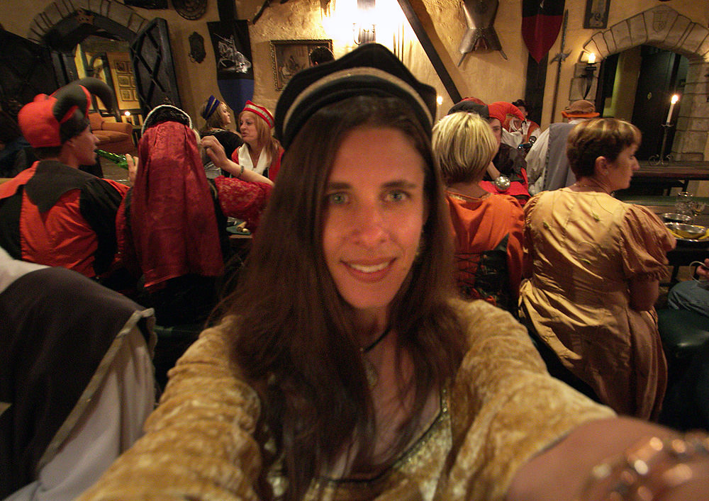 Just as an add-on, we once went to Medieval Times, which I think is similar to your experience. We waved roast turkey legs and cheered knights on horseback down in an arena. Most people go there in modern dress (tourists) but we all went in our Arthurian garb. And people would come up and ask where the restrooms were. Thought we worked there. My favorite memory, though, was our waiter whose name tag said “I’m your surf, Lance.” Only in California.