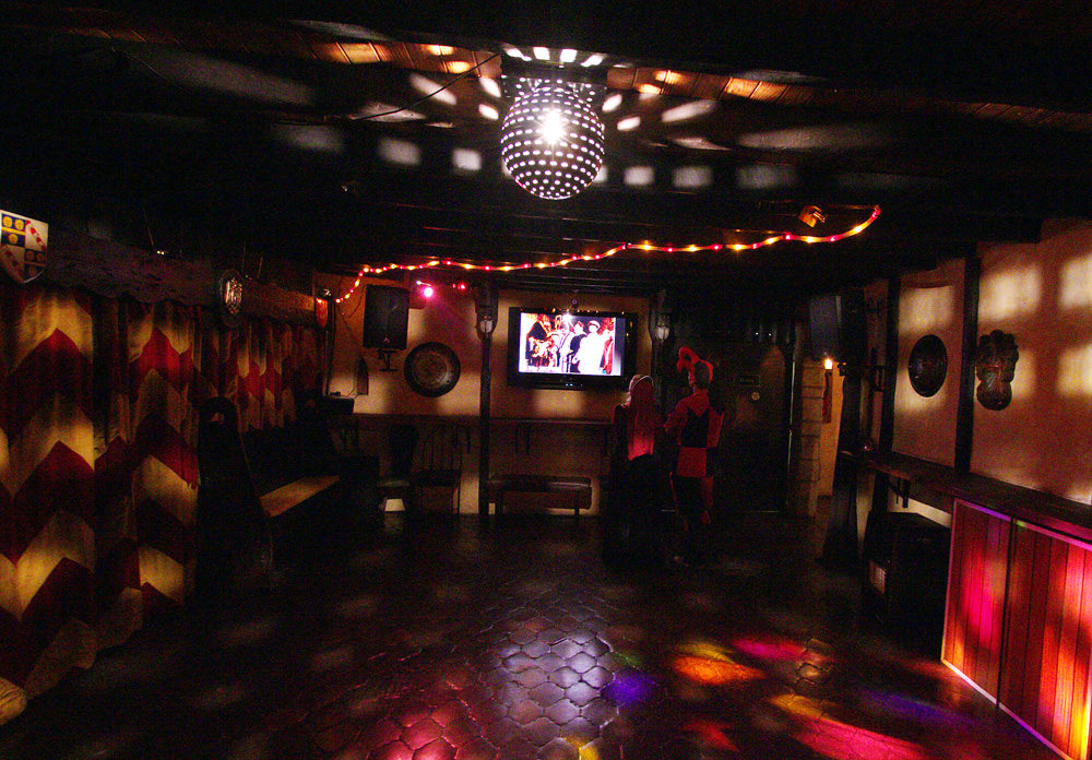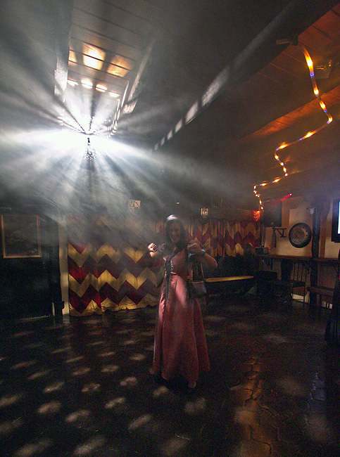 A couple of us did a quick twirl around the deserted disco floor before leaving. Here is Jackie, whose medieval street name is Cinderella, shimmying to “Celebration” by Kool & the Gang.