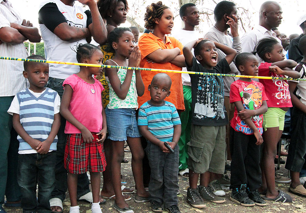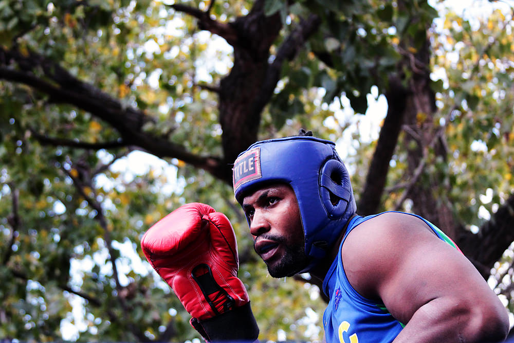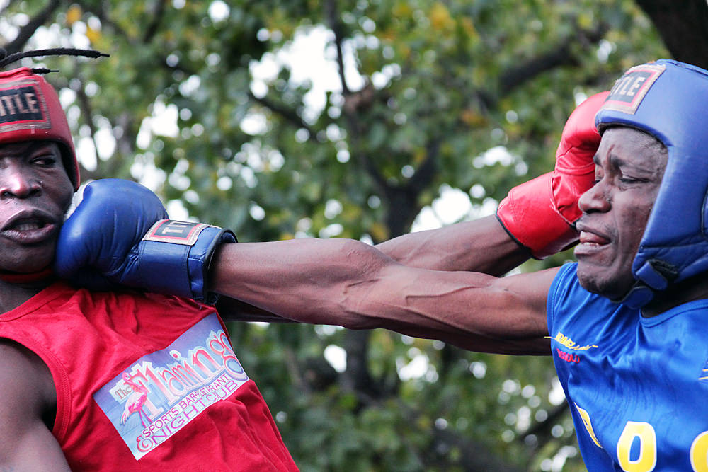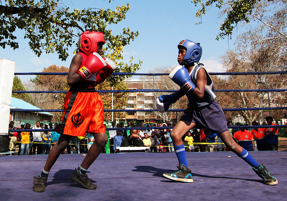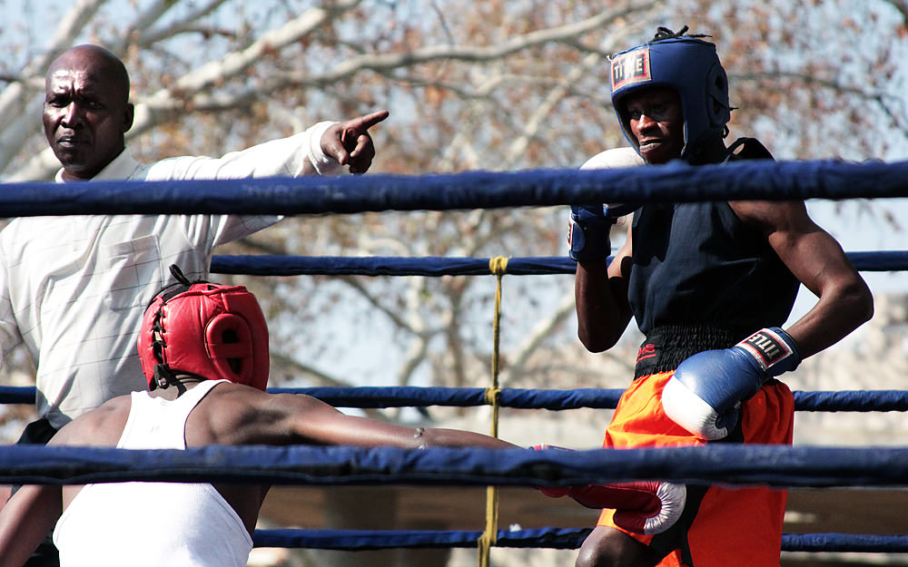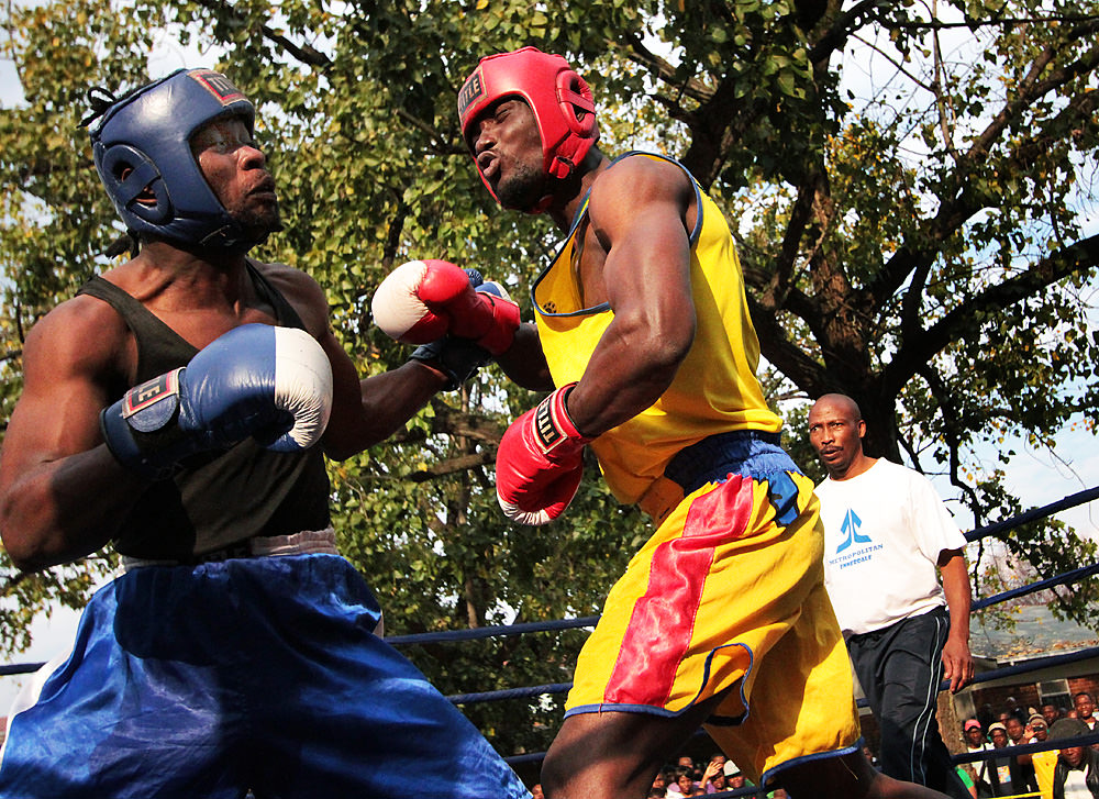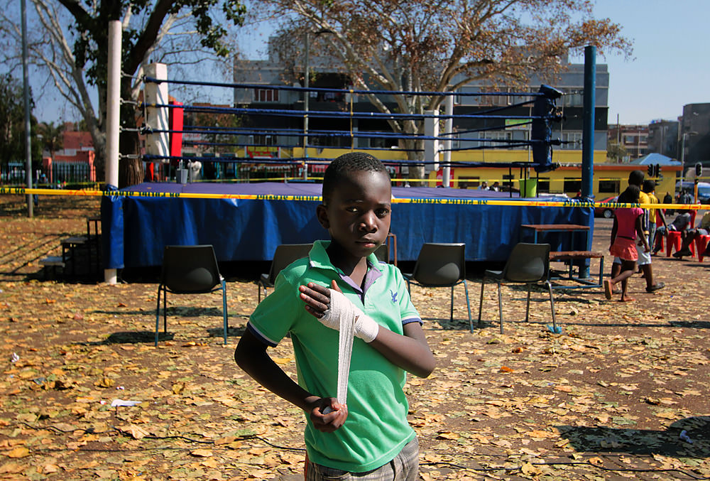 I love photographing boxing almost as much as I love boxing itself, and I’m particularly pleased with the photos I took last weekend. The tournament was in Yeoville, yet another inner city suburb known for its colorful history and rampant crime. An open-air boxing ring was set up in the middle of a park on Rockey Street. Like the previous tournament I attended in Hillbrow, there was a series of three-round bouts, with competitors ranging from young kids to adults. Several of George’s fighters competed.