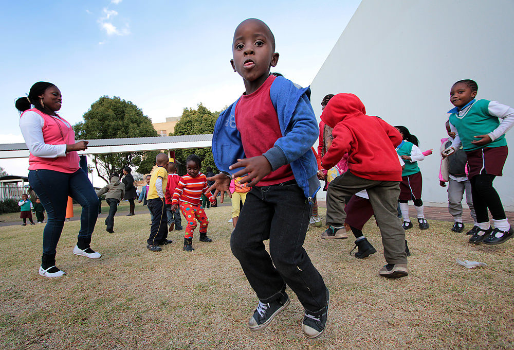 You may remember Lebo, the camp counselor from Soweto who I wrote about a couple of months back. Ever since we met, Lebo has been asking me to come visit his after-school program, Lebo’s Indigenous Games Project (LIGP), where he and his staff work to provide kids with a good start in life. For one reason or another I still haven’t made it to visit LIGP in Soweto, but Lebo is a persistent young man. He kept calling and calling, and finally convinced me to attend a “Children’s Day” event that he helped organize at the South African Airlines (SAA) Crèche near O.R. Tambo Airport. (“Crèche” is the South African term for a daycare center or nursery school.)