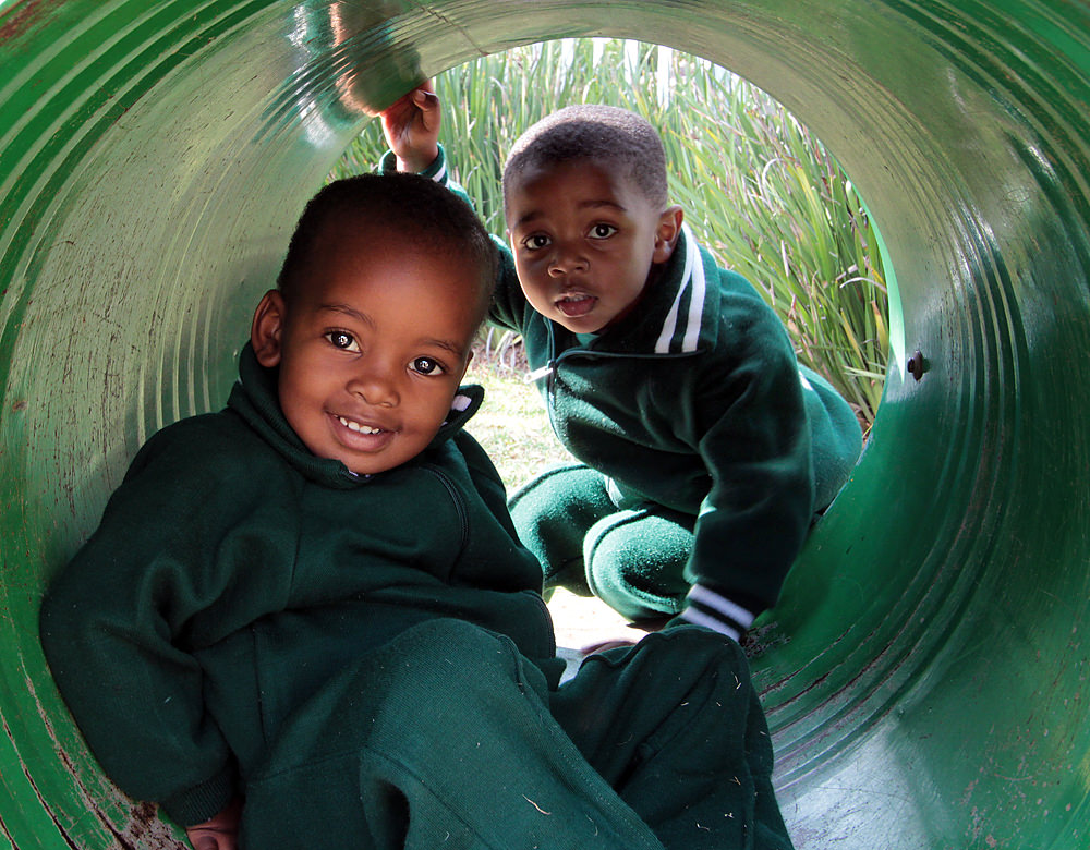 Most African playgrounds are made from recycled materials. Rubber tires and pipes become swing sets. Old metal drums become tunnels.