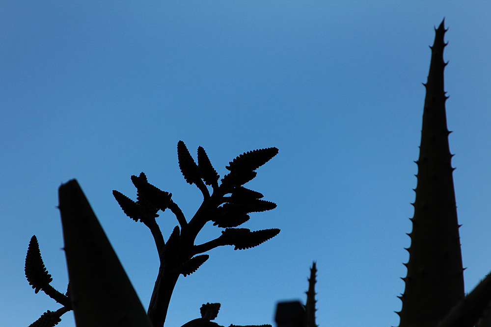 Aloe blooms, in silhouette. These are Heather’s favorite winter flowers.