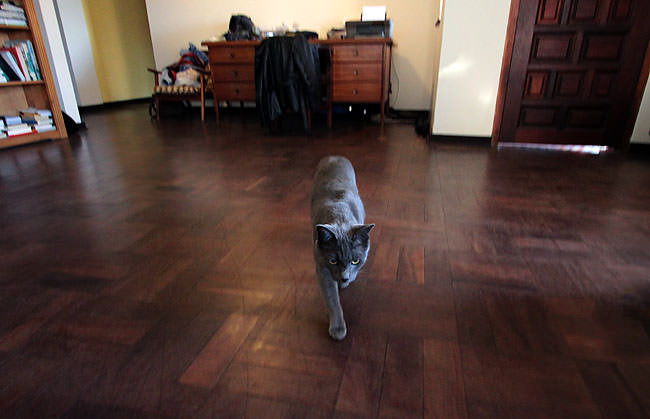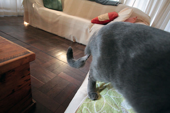 A glimpse of my funny tail as I dash angrily past Heather on the couch.
