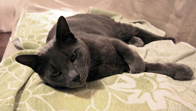 Smokey is resting well and his tail no longer seems to be bothering him. He’ll get a dose of antibiotics hidden in milk for the next few days, and when his fur grows back he should be good as new. He’ll be allowed outside again tomorrow.