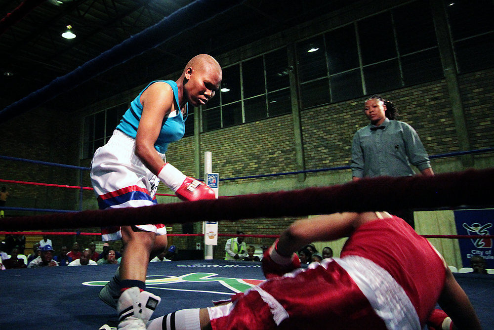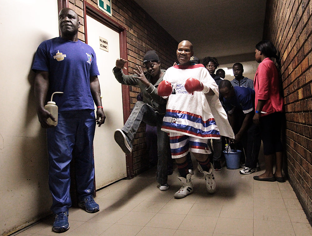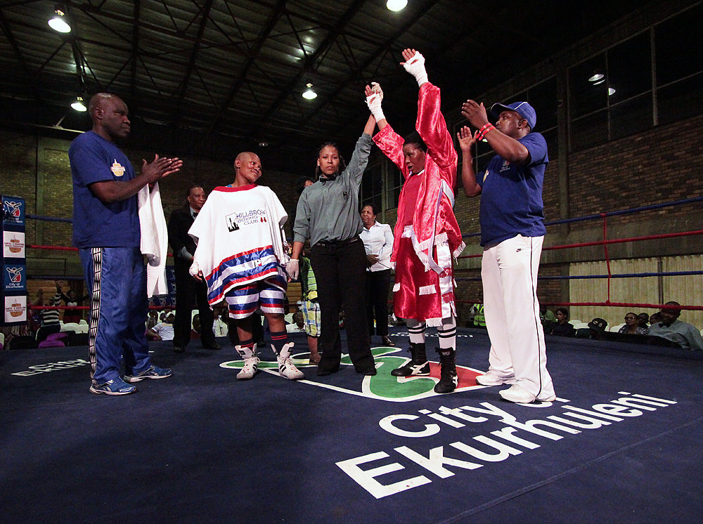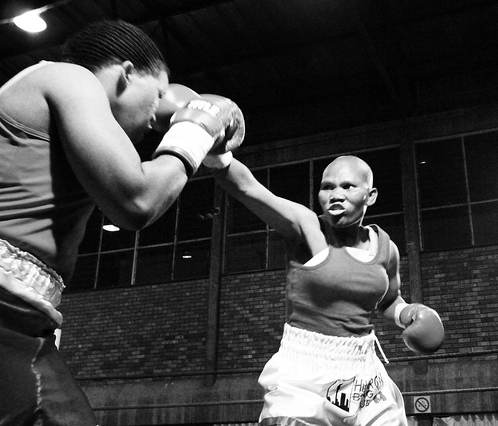 Two of the fighters who competed in last weekend’s professional women’s boxing tournament – Lillian “Lily” Molala and Phindile “Zulu Girl” Mwelase – are members of the Hillbrow Boxing Club. I went to the tournament to cheer them on.