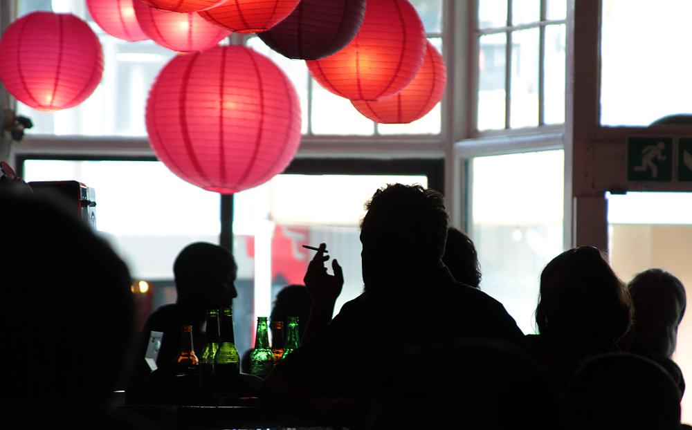 Young South African poets of the future take advantage of an open mic at The Loft. They are giving a rousing rendition of Nkosi Sikelel’ iAfrika.