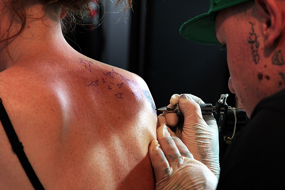 I love tattoo photography. I discovered this last year, when my best friend Claire and I got inked together back home in the States. I enjoyed documenting the experience almost as much as I enjoyed getting the tattoo. In fact, my D.C. tattoo post is one of my favorite 2Summers posts of all time. So I was excited to do it again, this time as a spectator rather than a nervous participant.