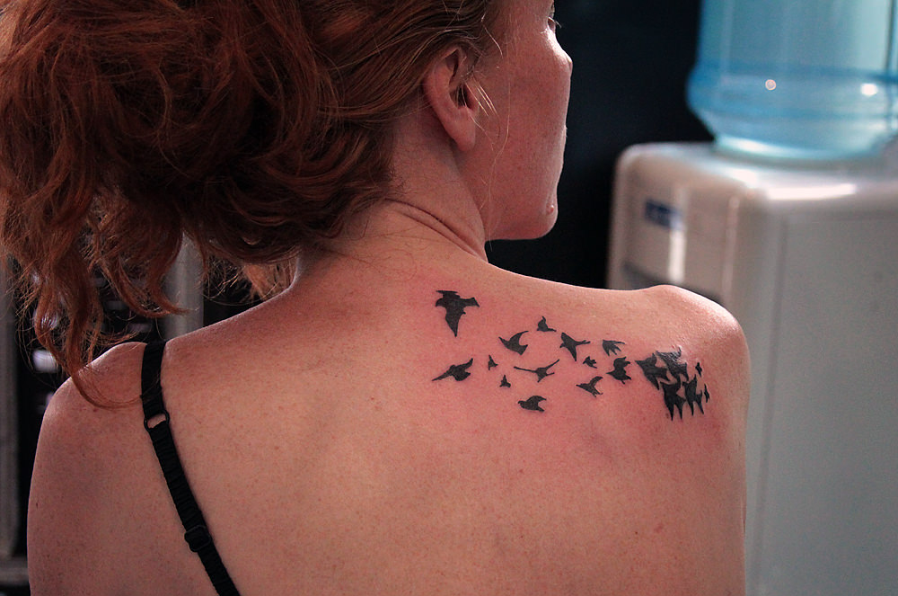 Ruth has always wanted to transform the four-bird tattoo into the flock she originally dreamed of. Hence, yesterday’s birthday present.