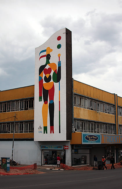 The murals are great and I loved the walk. (Thank to Bongani from Mainstreetwalks for the fantastic tour, and the poem.) I should mention, though, that there is some controversy swirling around I ART JOBURG. Members of the graffiti community here in Jozi have questioned why no Joburg-based artists were asked to participate. I also thought this a bit strange as I was looking at the exhibition.