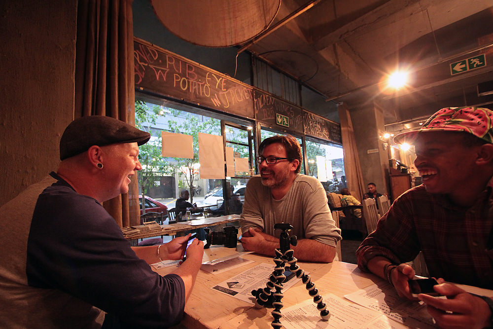 Roy Wrench (left), Tim (centre), and Andile (right) discuss iPhonography. I think they are laughing at my iPad.