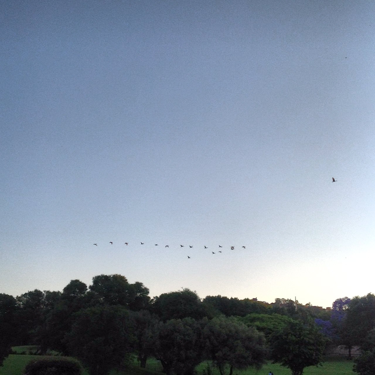 After our walk we headed to the Zoo Lake Bowling Club for a drink. We arrived just in time to see flocks of ibis swooping in to roost for the night.