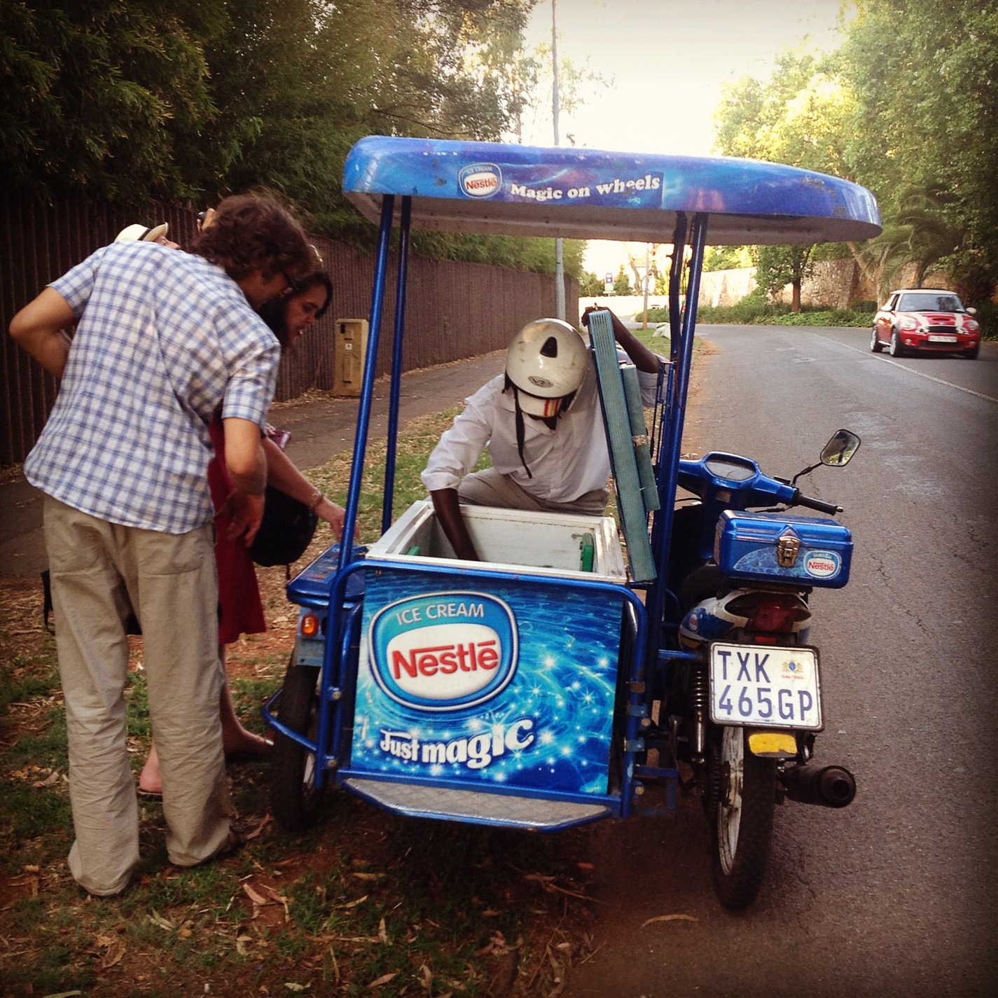 I can’t remember who decided to hail the ice cream scooter. It was a great idea though.