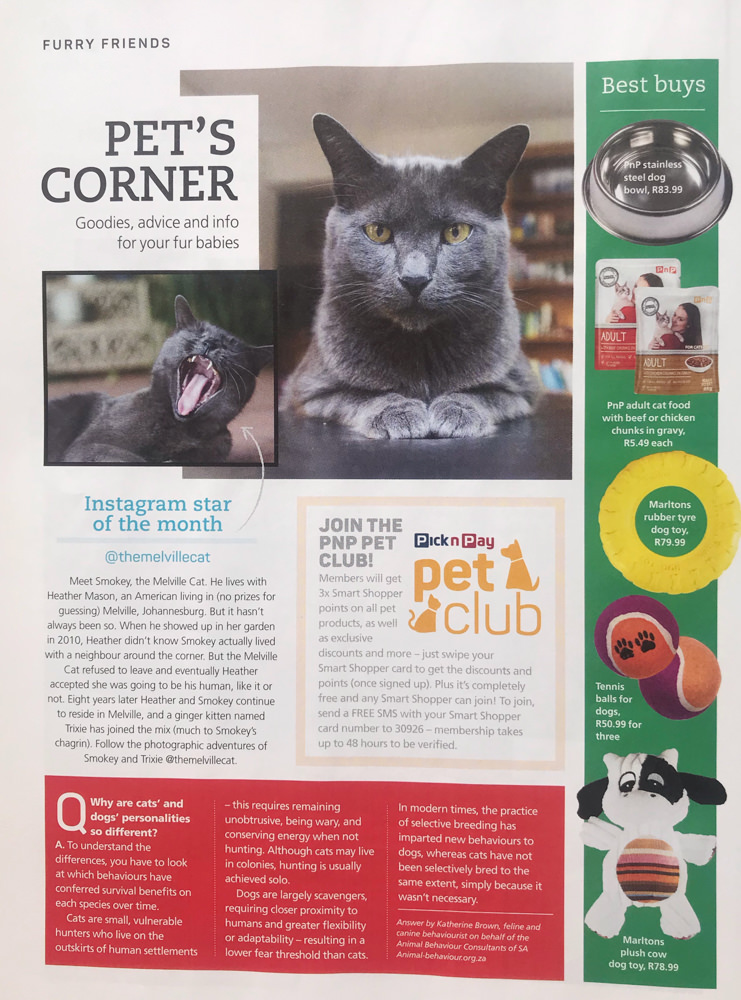 The Melville Cat’s Soenchie bowl was complimentary. He received nothing in return for his Pick n Pay Instagram stardom. Opinions expressed are his own.