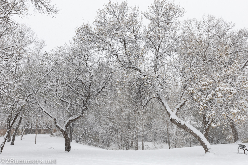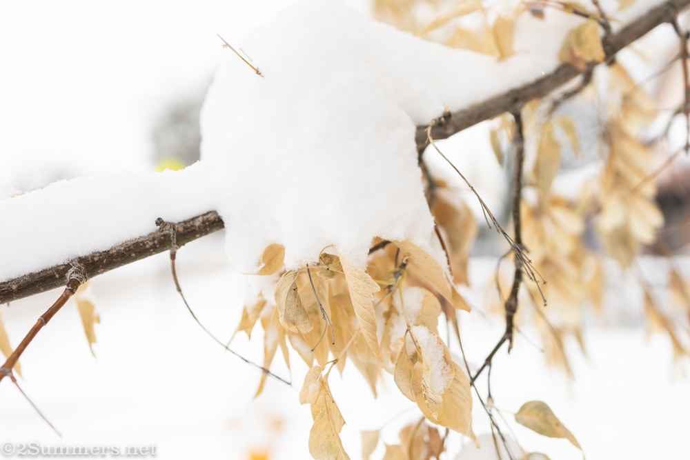 I went outside and discovered a soft, silent, snow-white utopia. Falling snow somehow makes sub-freezing temperatures feel less cold – I crunched around comfortably despite the 17° Fahrenheit (-8 Celsius) air. I had the best time taking photos.