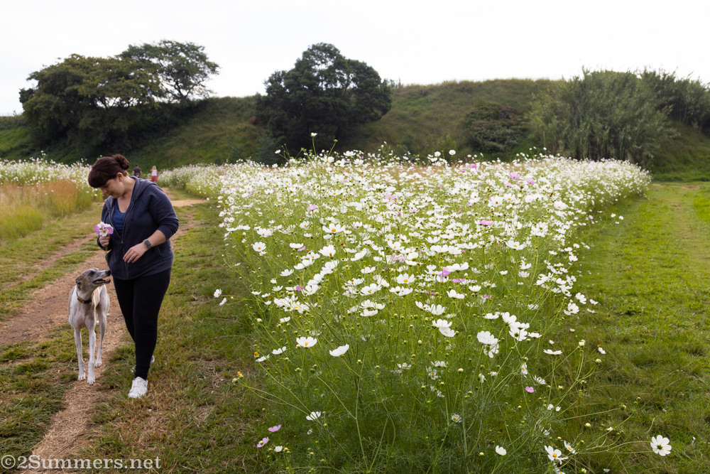 I jumped in my car immediately and headed to Delta Park, where huge banks of cosmos flowers bloom every March. The cosmos form magical clouds of pink and white petals, floating just below the Joburg skyline.