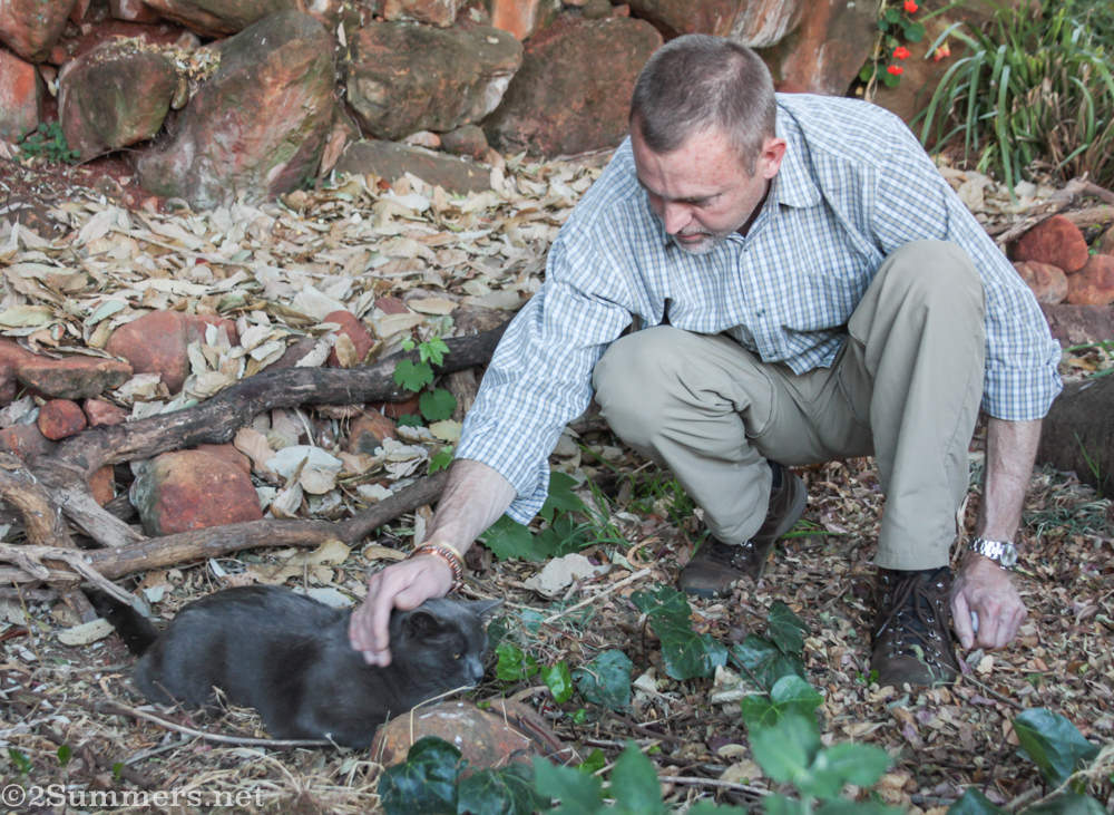Returned to South Africa to find that Jon, who would die about three months later, had more-or-less adopted Smokey the Melville Cat, who was living a double life at the time but we didn’t know it yet.