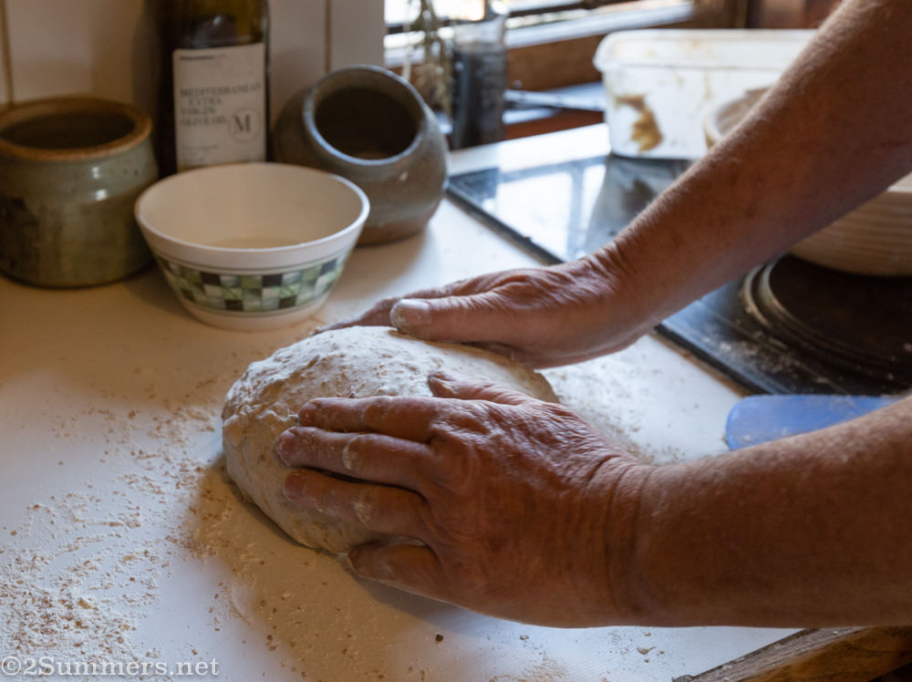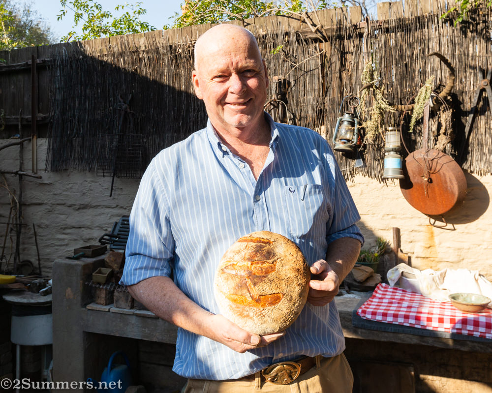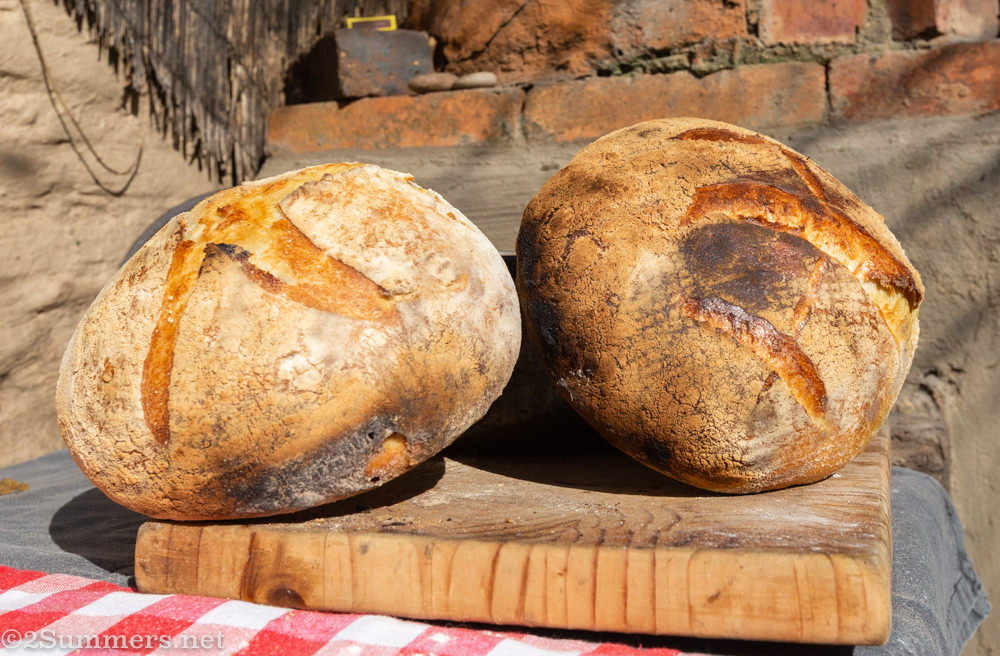 Luckily Chris has a hand-crafted pizza oven in the backyard, and decades of experience baking artisan-quality bread loaves. He bakes the bread in big iron pots, just a couple of loaves at a time, and it’s the best bread I’ve ever eaten. Each loaf is an edible work of art.