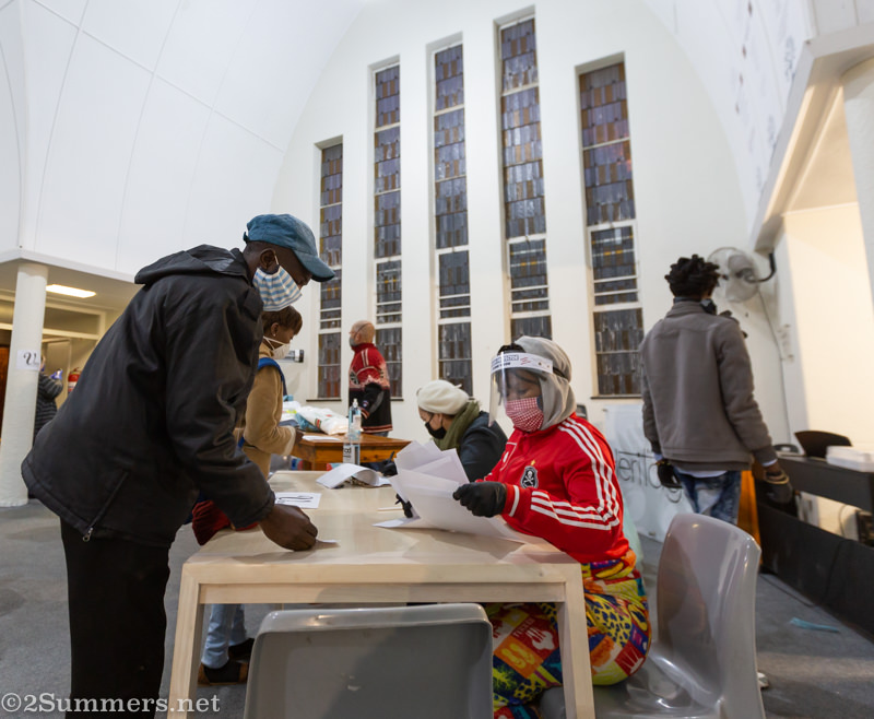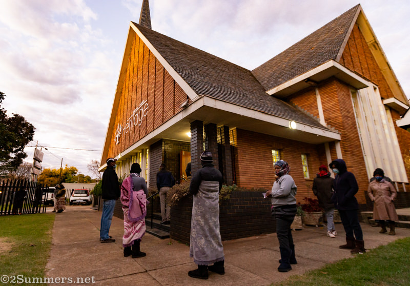 For the last couple of Thursdays mornings, I have intended to get myself to Heritage Baptist Church and the Melville food distribution by 6:00 a.m. The food parcel recipients have been lining up as early as 4:00 a.m., and the whole process is more or less finished by the time the sun comes up. I’m supposed to be documenting the program. But last week I arrived at 7:00 and basically missed everything.