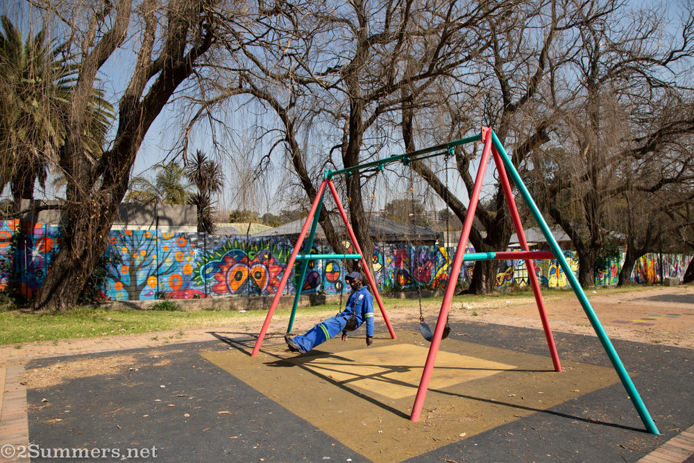 Paterson Park’s art installations are part of Art My Jozi, an initiative implemented by the Trinity Session and the Johannesburg Development Agency. Art My Jozi also spearheaded the S-bend mural project on Louis Botha Avenue, which I blogged about last year.