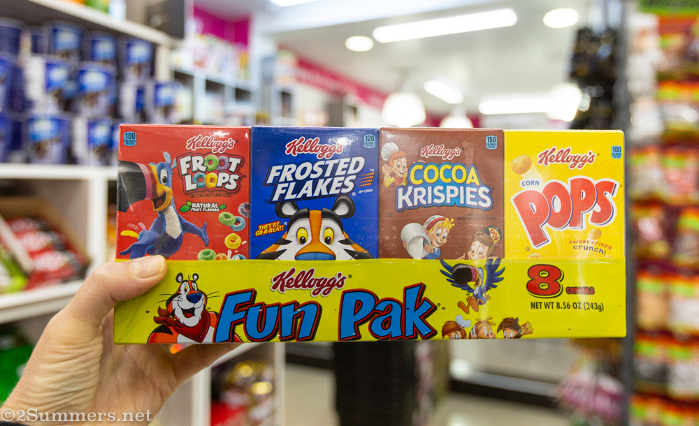 I haven’t seen those Kellogg mini cereal boxes in years. I wonder if they still have them here in the USA But where are the REAL junk foods: like Twinkies, Ding Dongs, Ho Hos, Moon pies, etc? https://www.hostesscakes.com/where-to-buy/ and https://moonpie.com/find