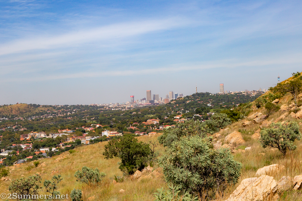 Joburg has many ridges, as I said. But Linksfield Ridge is particularly interesting because it runs perfectly east-west and is right in the middle of town, serving as an unofficial dividing line between central Joburg and the East Rand. As we walked along Linksfield Ridge, it felt like we were bisecting the city, with the downtown skyline on one side and the Sandton skyline on the other.